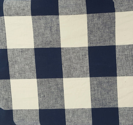 1 Yard Linen Cotton Buffalo Check Fabric Blue Off White Yarn Dyed Rustic Woven