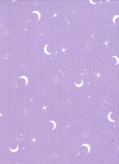 1 Yard Polyester Spandex Yummy Rib Knit Fabric Star Moon Print Soft Stretch 58/60" Width