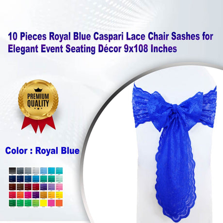10 Pieces Royal Blue Caspari Lace Chair Sashes for Elegant Event Seating Décor 9x108 Inches