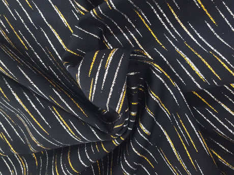 1 Yard Black Nylon Spandex Fabric with Gold & Silver Streaks Soft Stretchy Shine