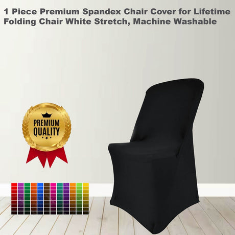 1 Piece Black Premium Spandex Folding Chair Cover Fits Lifetime Chairs, Machine Washable