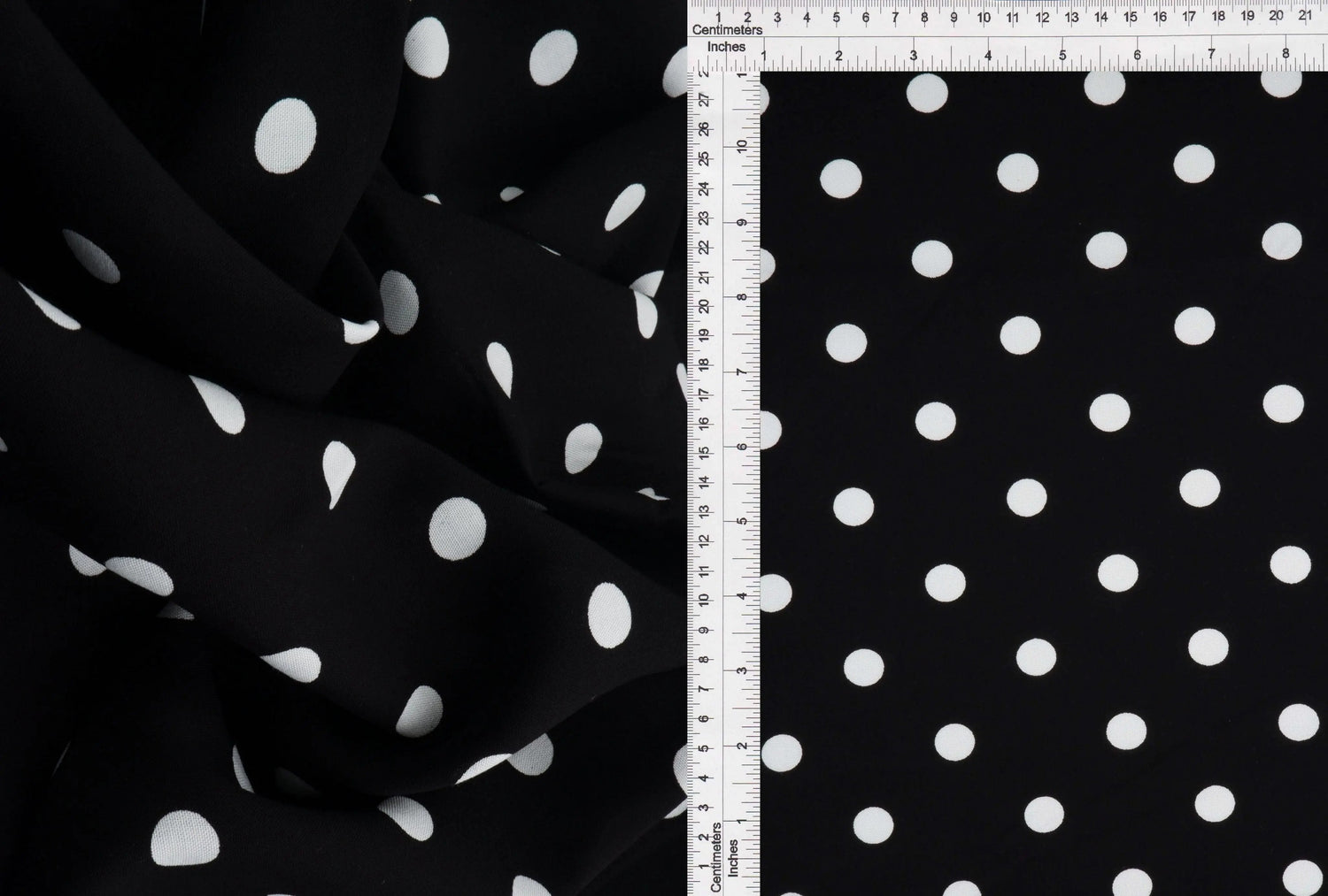 1 Yard Rayon Challis Polka Dot Print Fabric, 54'' Wide 100% Rayon - BLACK/IVORY is backordered and will ship as soon as it is back in stock.