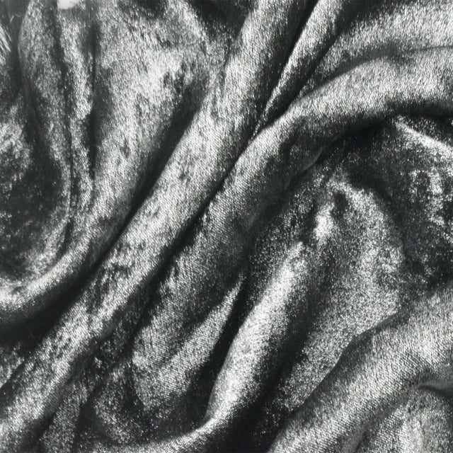 • Discover the unique visual appeal of this texture printed twill woven fabric, featuring a sophisticated pattern that resembles crushed velvet in metallic silver.
