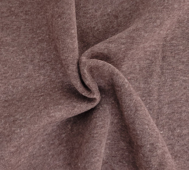 This washed chocolate cotton blend sweatshirt fleece knit offers cozy warmth and a soft, brushed interior, ideal for cooler weather garments. Its 300 GSM weight provides just the right balance of insulation and comfort without feeling bulky. With a smooth face and plush backing, it's perfect for making hoodies, joggers, pullovers, and more. The earthy washed chocolate tone brings a modern, lived in look to casual wear projects.
