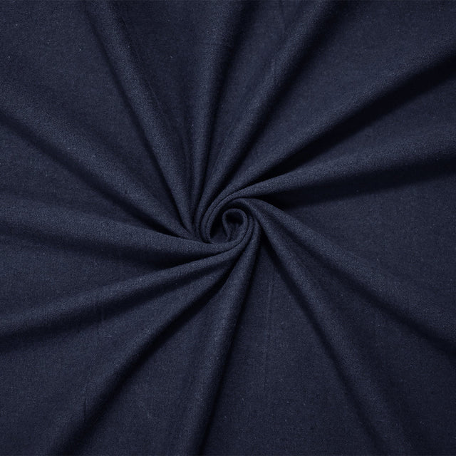 Create versatile and comfortable garments with this deep blue organic cotton stretch jersey knit fabric. Featuring a soft hand matte finish and excellent drape this fabric is ideal for apparel activewear and dancewear. The opaque construction with four way stretch provides breathable comfort flexibility and long lasting shape. Its light to medium weight design ensures both structure and softness for fitted or flowing clothing projects.