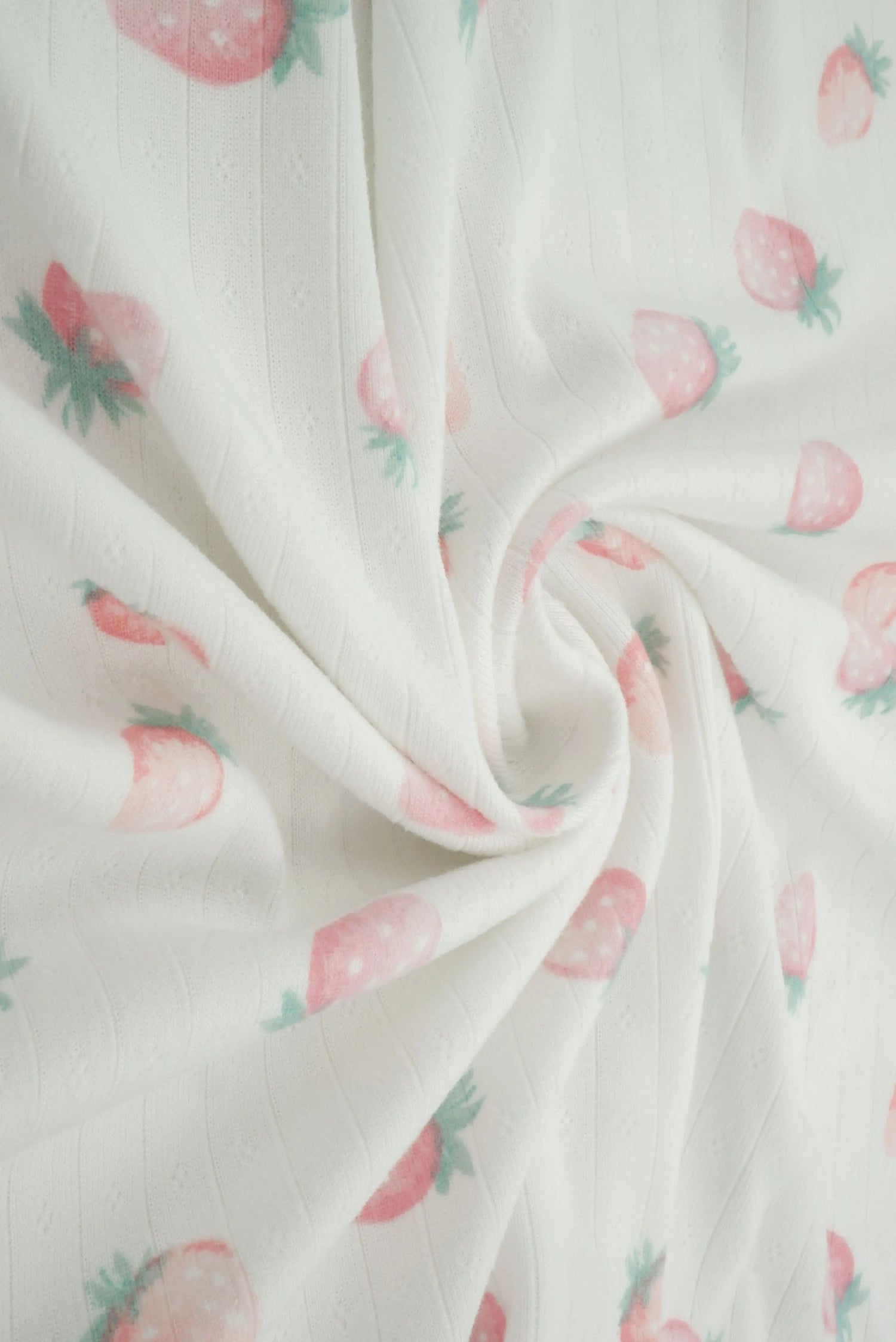 1 Yard 93% Polyester 7% Spandex Cotton-Style Pointelle Strawberry Print Fabric 58/60" Width