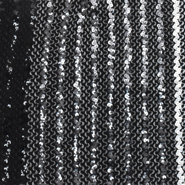 This captivating gray black multi 3D wave with sequins acrylic poly woven jacketing fabric, sold as 1 yard with a 28 inch width, offers a unique texture and dazzling appeal for your apparel creations. Crafted from a durable Acrylic Polyester blend, this medium heavy weight textile features opaque transparency and a distinct textured hand, showcasing tonal large scale stripes embedded with shimmering sequins. With no stretch and a full body drape, it's perfectly suited for crafting structured jackets, elaborate costumes, and various apparel that demands a distinct silhouette and eye catching sparkle. This versatile material boasts a lustrous finish and is conveniently machine washable for effortless care, making it an excellent choice for standout garments.