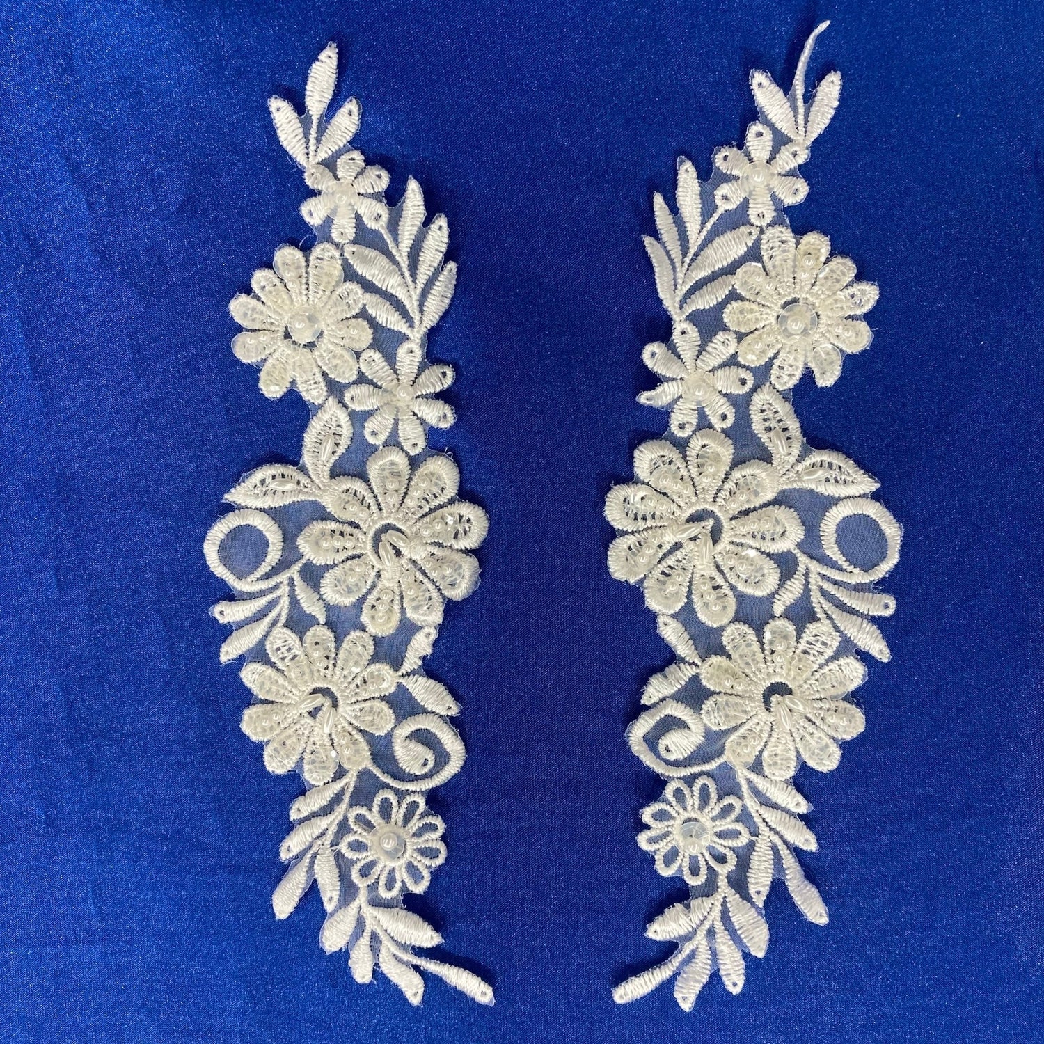 1 Pair Beaded Lace Applique Embroidered on 100% Polyester Organza 9" x 2.5" Each Side - Ivory is backordered and will ship as soon as it is back in stock.