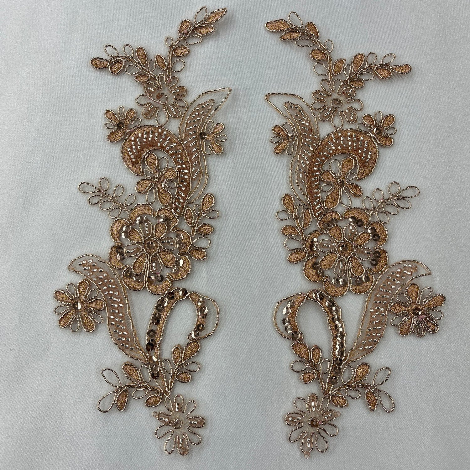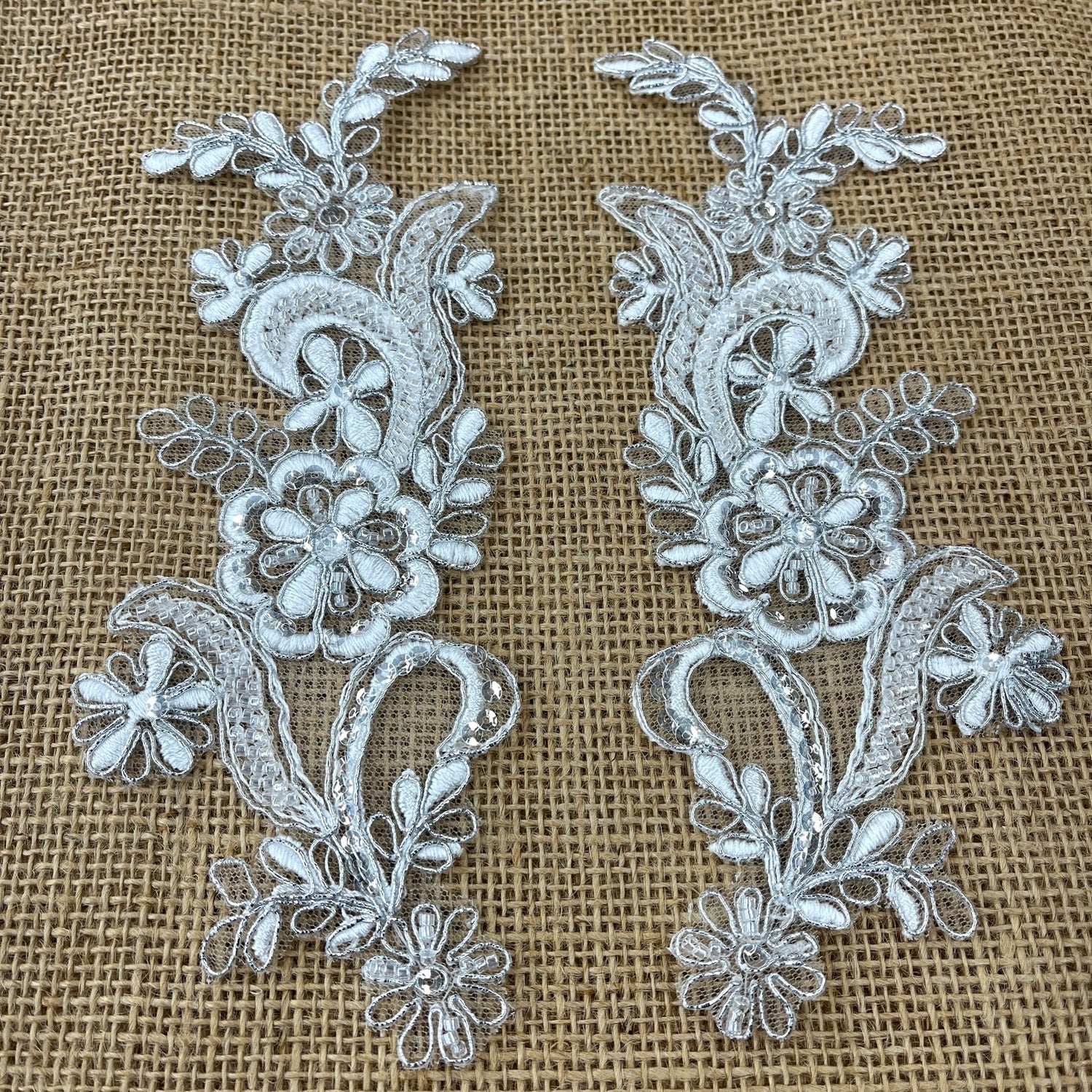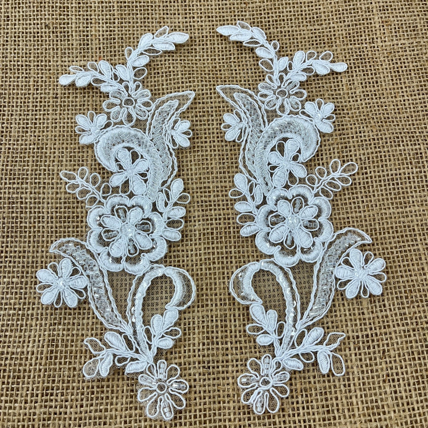 1 Pair Beaded & Corded Floral Lace Applique 9" x 2.5" Each Side