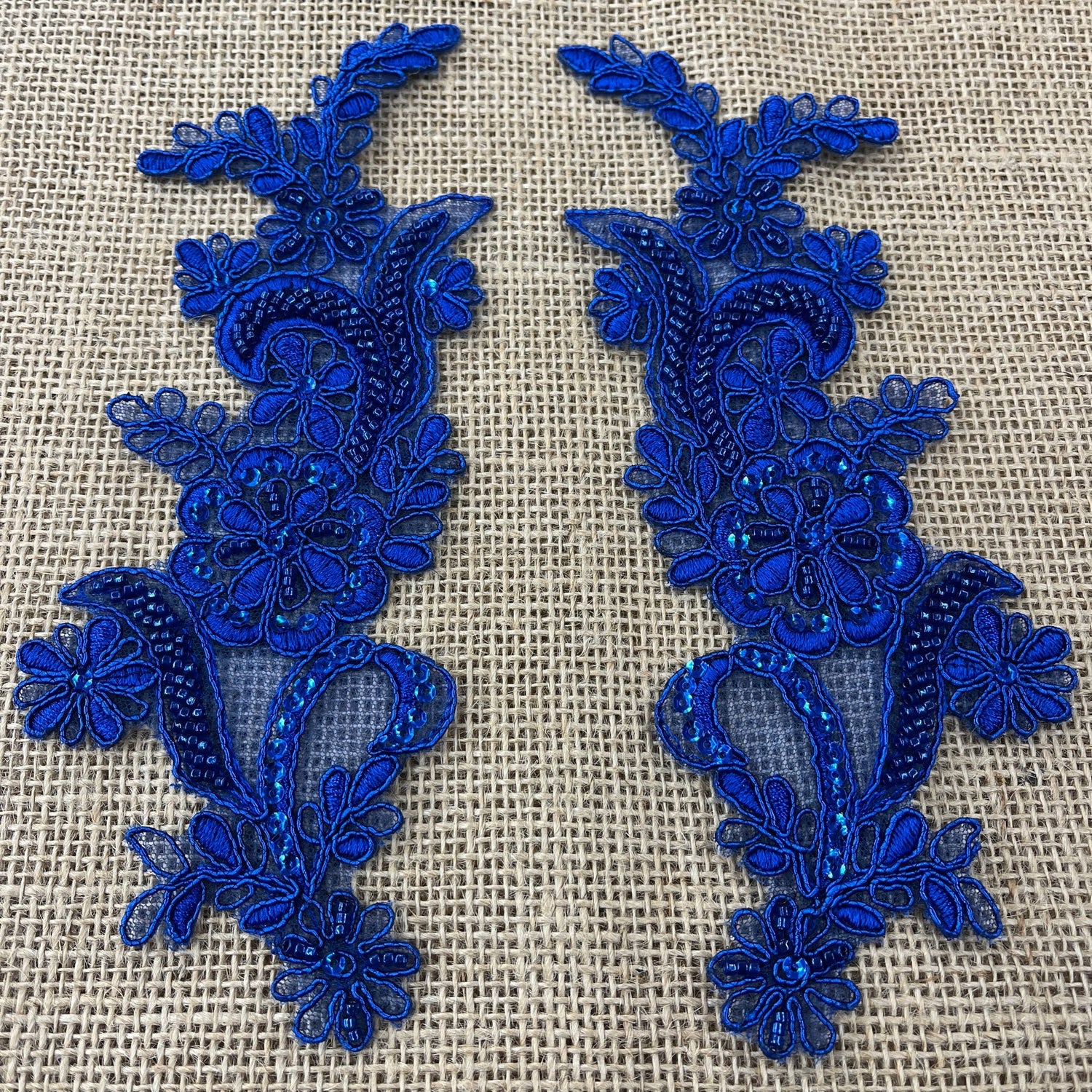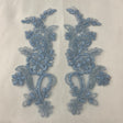 1 Pair Beaded & Corded Floral Lace Applique 9" x 2.5" Each Side - Lt. Blue is backordered and will ship as soon as it is back in stock.