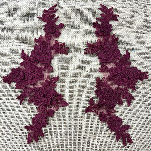 1 Pair 3D Floral Lace Applique Embroidered on 100% Polyester Net Mesh 12" x 4" Each Side