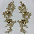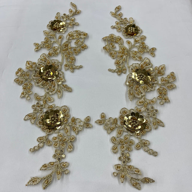 1 Pair 14" x 3" Beaded & Corded Floral 3D Lace Applique Embroidered on 100% Polyester Net Mesh - Gold is backordered and will ship as soon as it is back in stock.