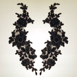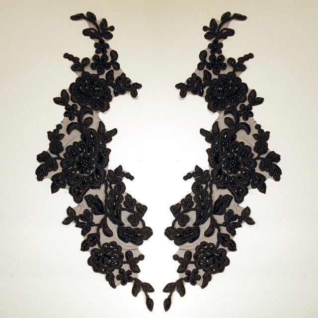 1 Pair 13" x 3" Beaded & Corded Floral Lace Applique on 100% Polyester Net Mesh