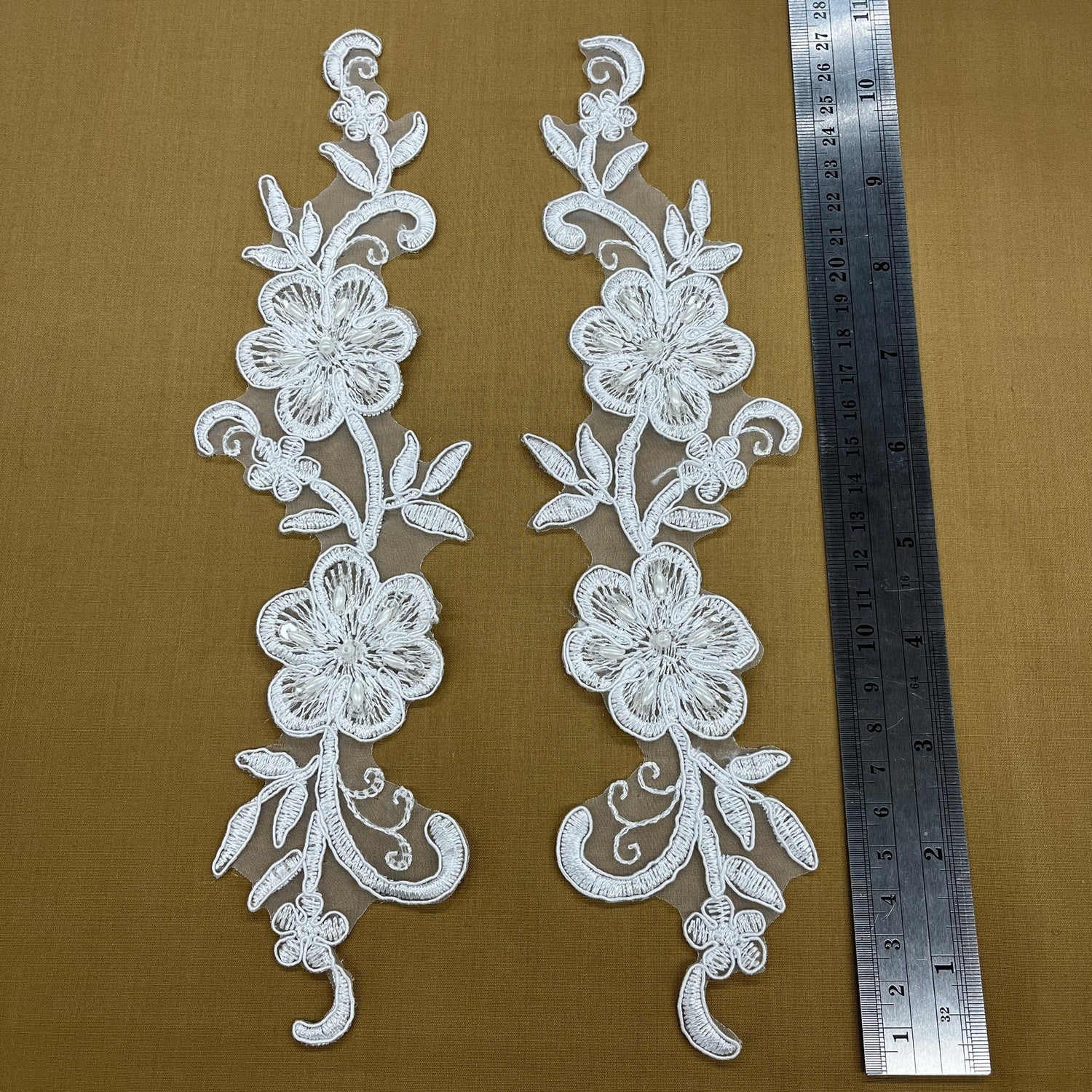 1 Pair Beaded & Corded Lace Applique 10" x 2" Each Side