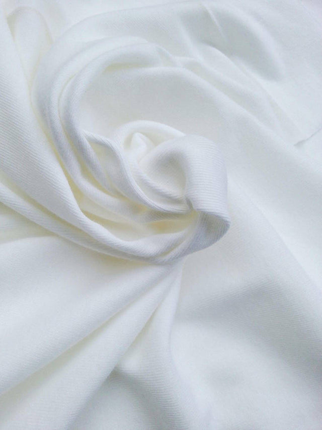 This White Cotton Spandex 1x1 Rib Knit Fabric (420 GSM) offers premium weight and stretch in a classic ribbed texture. Made from a high quality cotton spandex blend, this fabric provides excellent recovery and a close, structured fit. Its heavyweight feel makes it ideal for fitted tops, waistbands, cuffs, and other apparel that require both softness and durability with added stretch support.