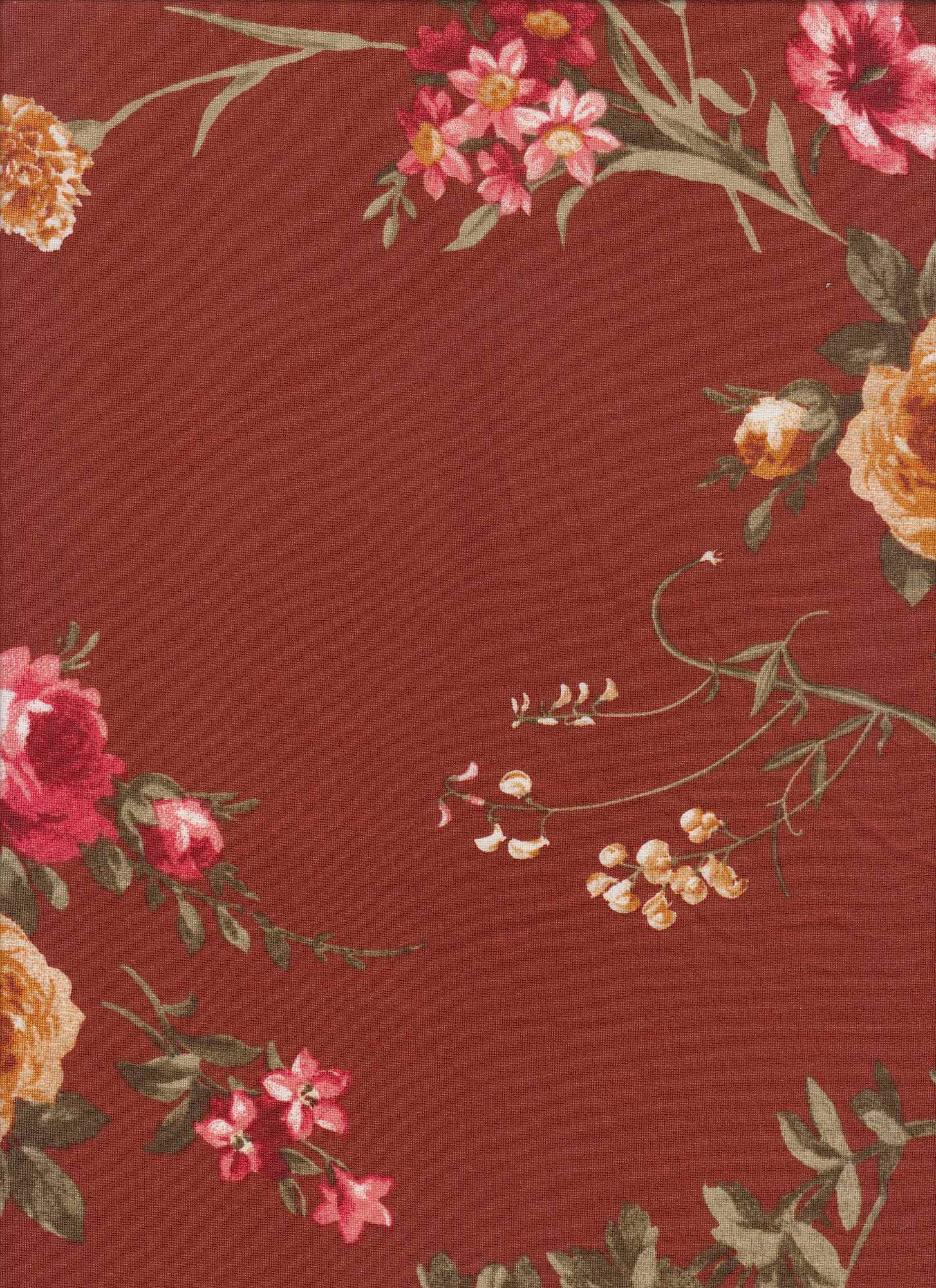 1 Yard Floral Print DTY Brushed Knit Fabric Soft Stretch Polyester Spandex 58/60 Inches Wide - RUST/TERRACOTTA is backordered and will ship as soon as it is back in stock.