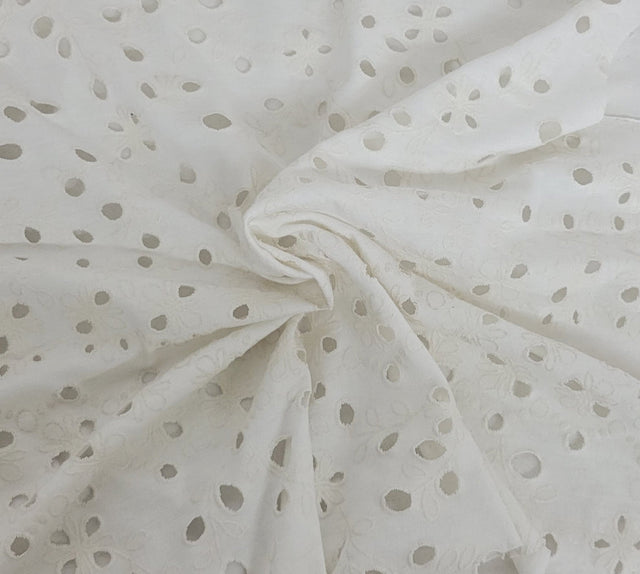 1 Yard White Eyelet Cotton Jersey Knit Fabric 150 GSM for Lightweight Tops, Babywear, and Sewing Projects