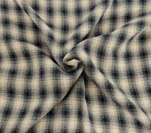 1 Yard Yarn Dye Plaid Rayon Blend Fabric Black Khaki For Shirts Dresses Fall Crafts DIY Sewing Projects
