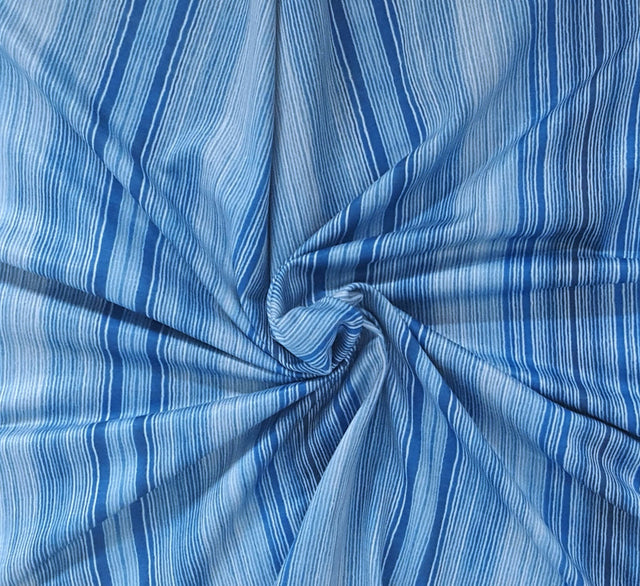 1 Yard Blue Stripes Activewear Poly Spandex Jersey Knit Fabric for Leggings, Tops, Costumes