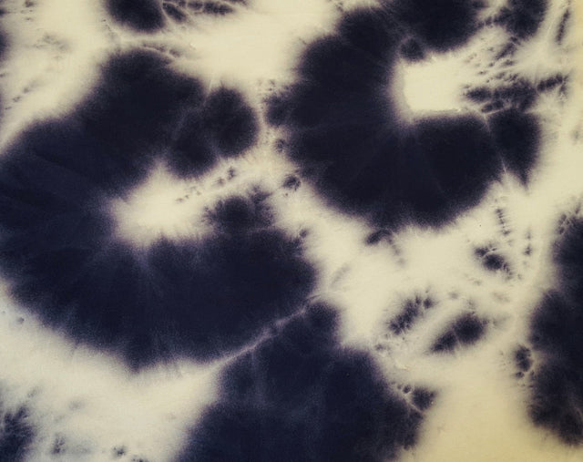 Add a bold artistic flair to your sewing projects with this Ivory and Navy Tie Dye Rayon Spandex Jersey Fabric (#78). Featuring a stylish hand dyed look, this lightweight knit combines ultra soft rayon with stretchy spandex for comfort and drape. Ideal for fashion forward garments such as tops, dresses, leggings, and accessories, this fabric offers both ease of movement and a trendy aesthetic.