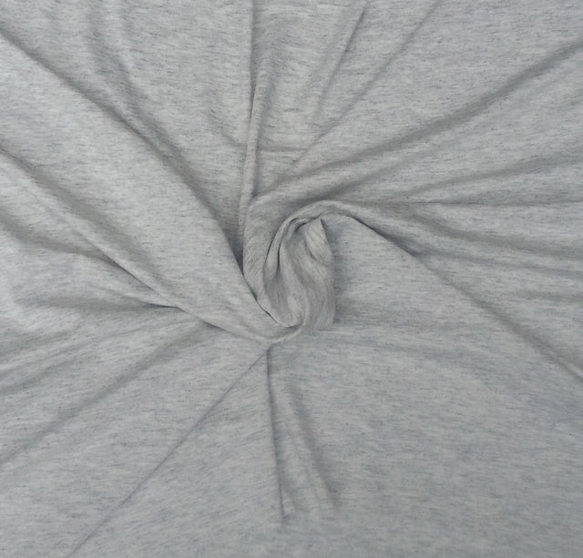 This Ash Gray Rayon Spandex Jersey fabric combines silky softness with stretch for maximum comfort and drape. Ideal for t shirts, dresses, activewear, and layering pieces, this knit fabric offers a smooth finish, excellent recovery, and breathability. Its heathered ash gray tone provides a neutral yet modern look, suitable for a wide range of garments.