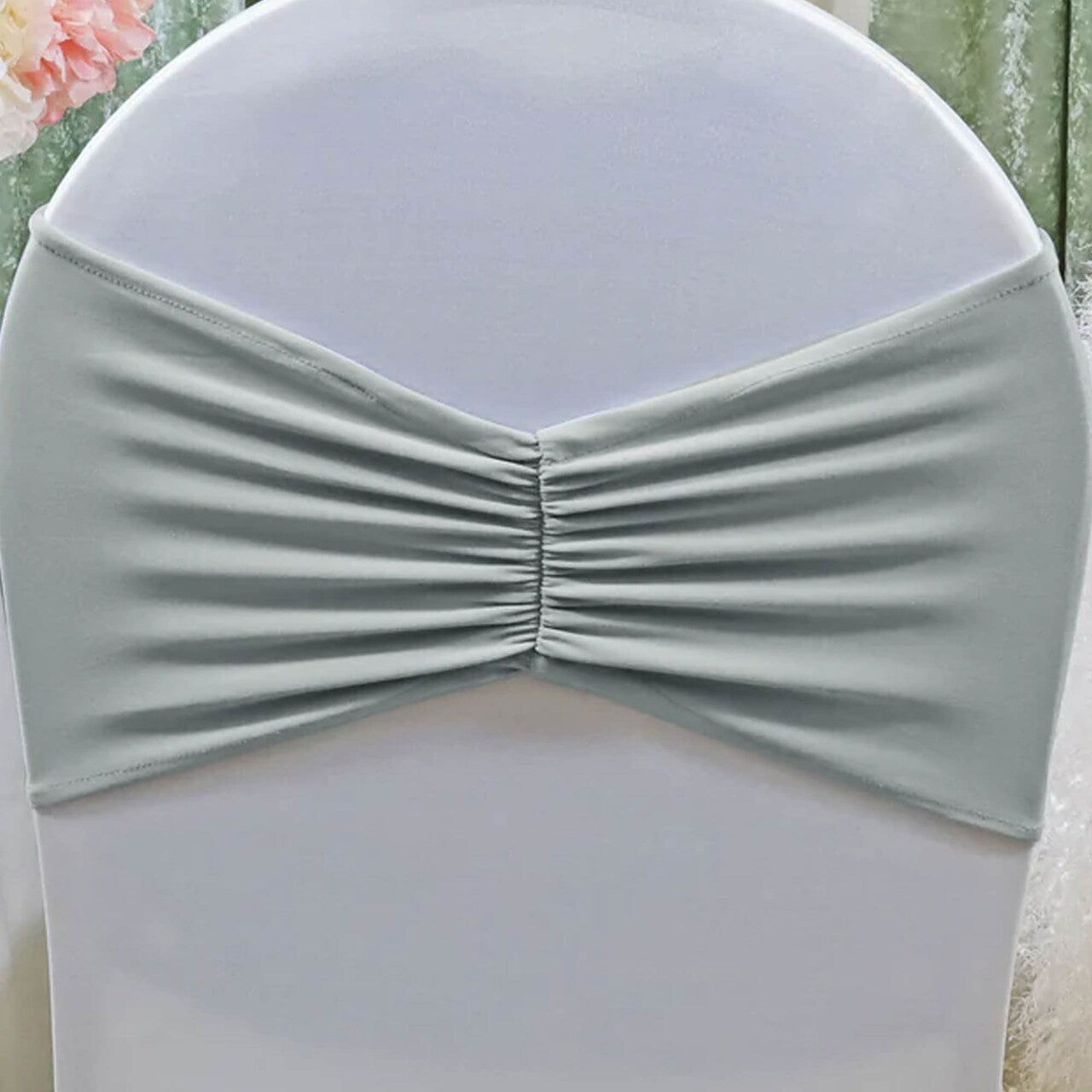 10 Pieces Silver Ruffled Spandex Chair Bands for Modern Event Styling 8x13 inches