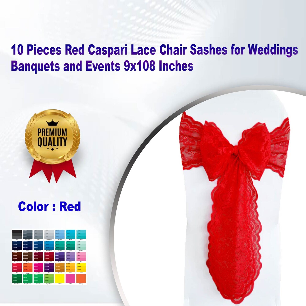 10 Pieces Red Caspari Lace Chair Sashes for Weddings Banquets and Events 9x108 Inches
