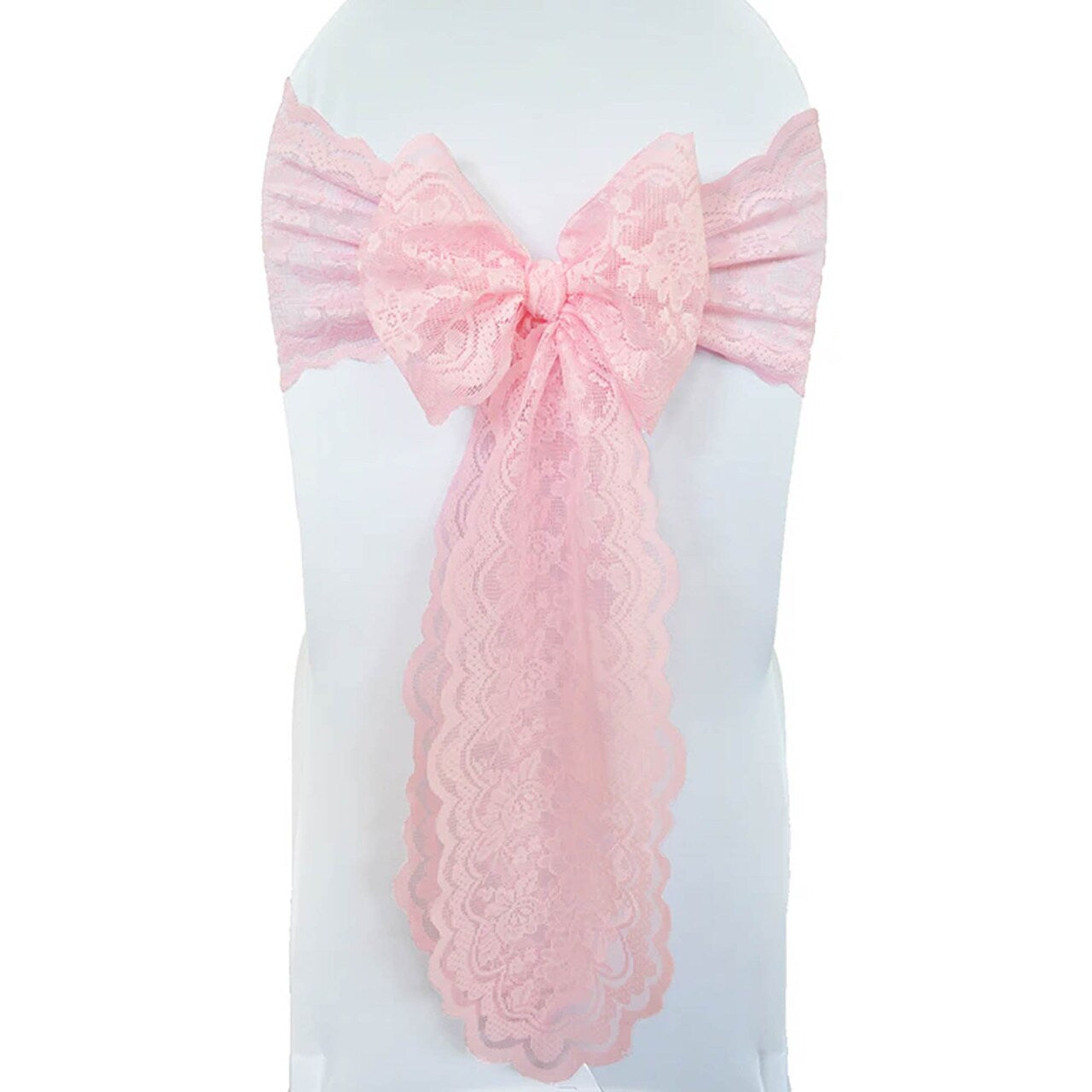 The soft pink hue and classic lace texture bring sophistication to your chair decorations, whether tied in bows or layered with other fabrics. Designed for easy care and reusability, these sashes are both practical and stunning.