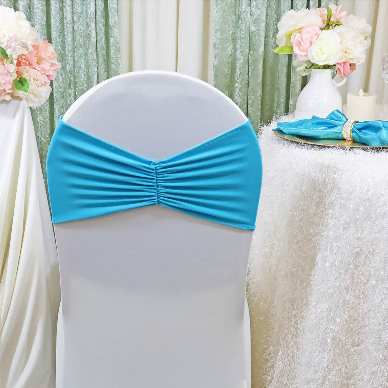 10 Pieces Turquoise Ruffled Spandex Chair Bands for Vibrant Party Seating 8x13 inches