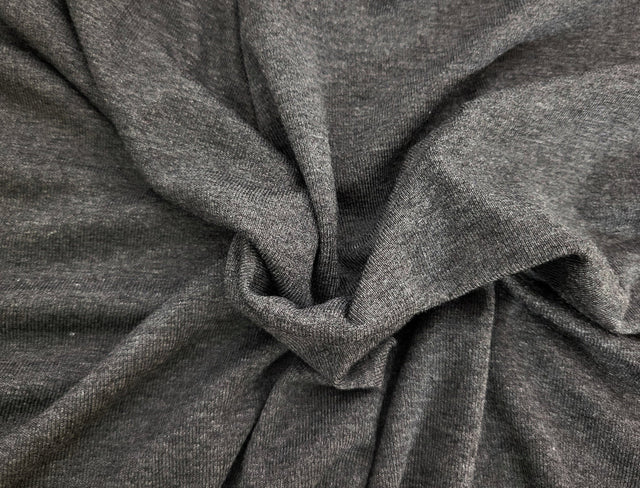 1 Yard Heather Charcoal Bamboo 1x1 Rib Knit Fabric Soft Stretch Knit