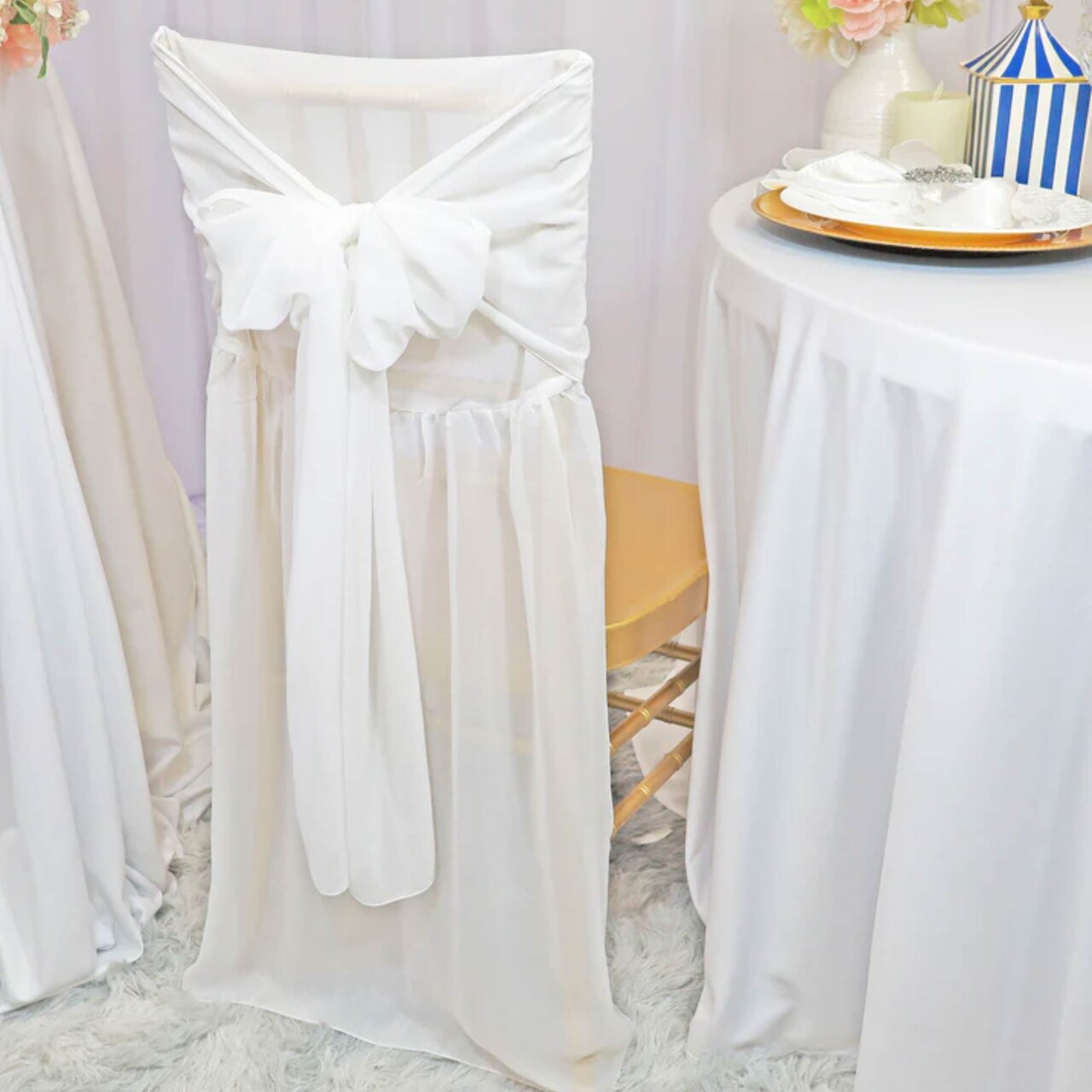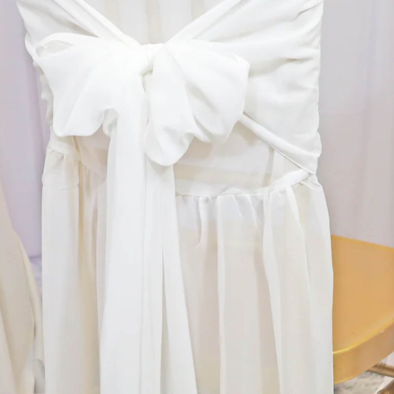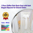 1 Piece White Chiffon Chair Back Cover with Sash Elegant Slipcover for Chiavari Chairs