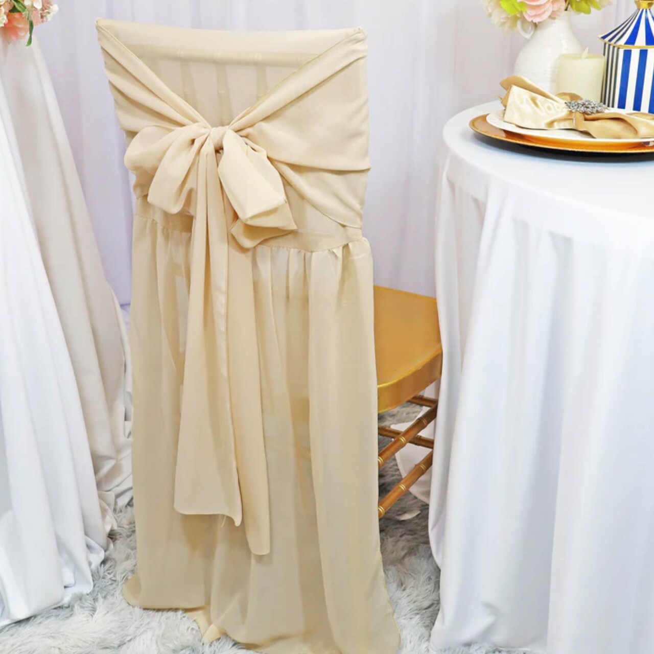 1 Piece Chiffon Chiavari Chair Cover With Sash Champagne