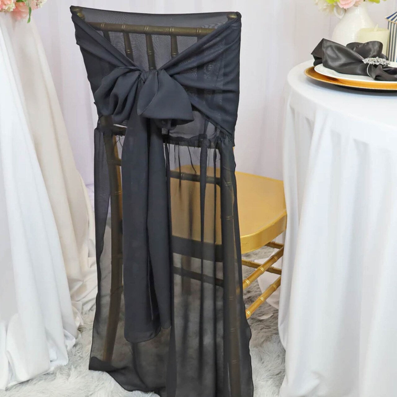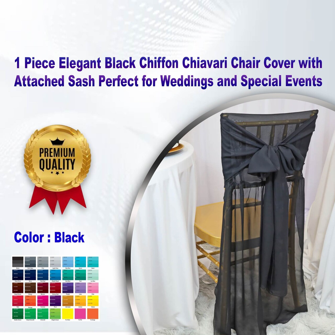 1 Piece Elegant Black Chiffon Chiavari Chair Cover with Attached Sash Perfect for Weddings and Special Events