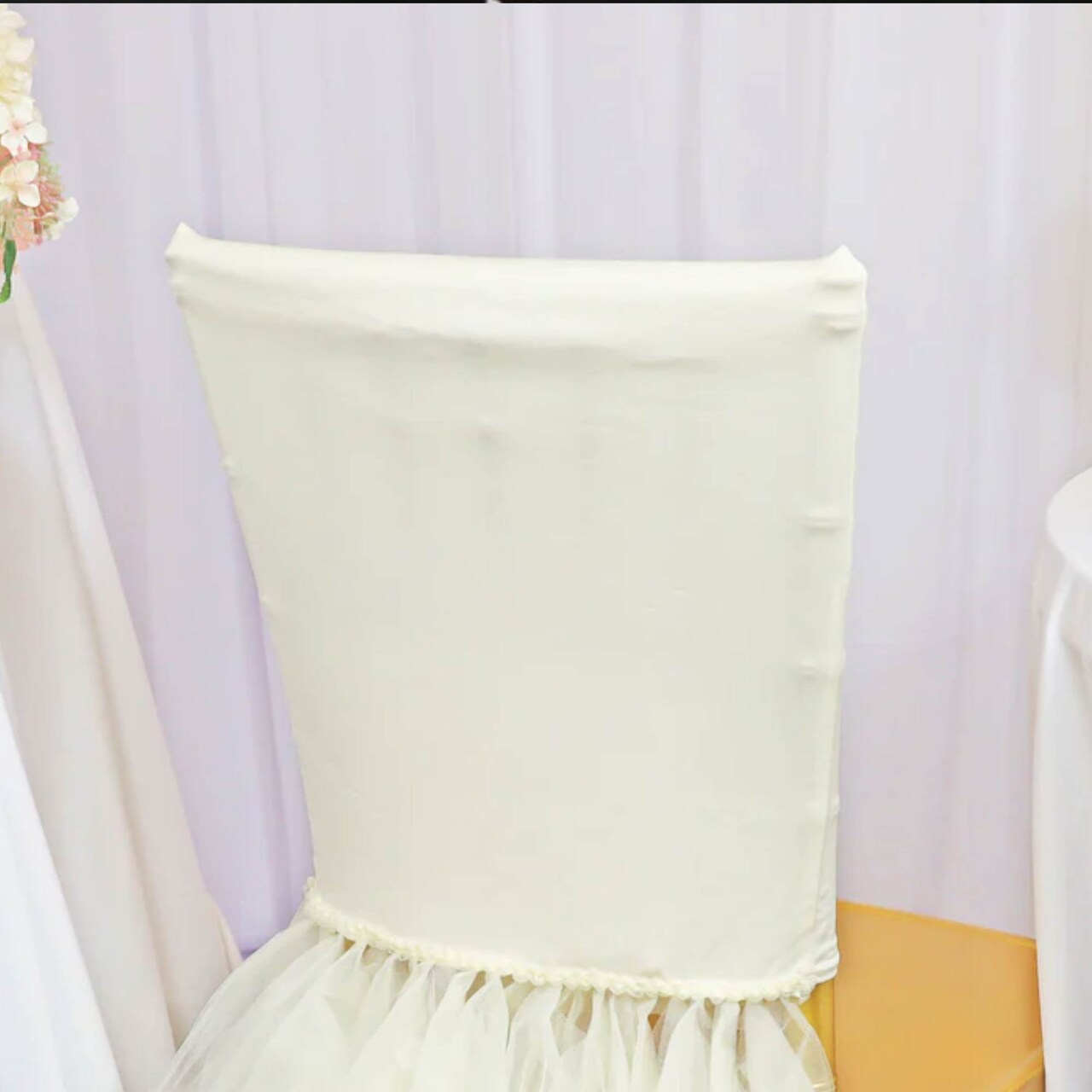 Crafted from premium 4 way stretch spandex fabric, this chair cover offers a snug and wrinkle resistant fit that holds throughout your event. The flowing ballerina inspired skirt detail adds a delicate and graceful touch, transforming your chairs into captivating focal points that elevate the ambiance.