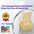 Constructed from premium 4 way stretch spandex (220 GSM), the cover provides a snug, flawless fit that contours perfectly to your chairs. The soft, smooth fabric is complemented by a flowing ballerina style skirt that adds a delicate, graceful silhouette to your event setup.