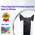 10 Pieces Elegant Black Floral Damask Jacquard Chair Sashes 7.5 x 108 Inches