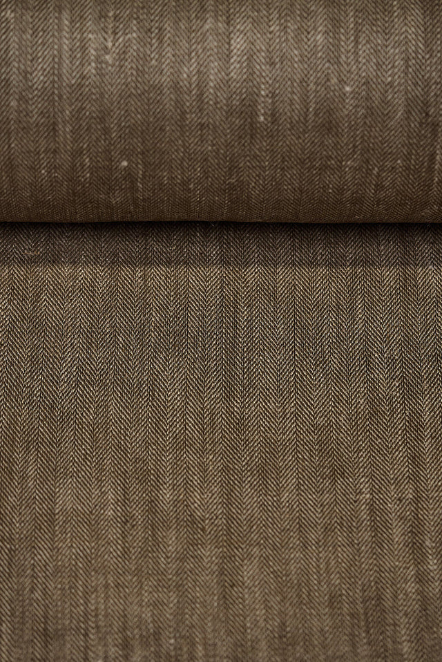 • Midweight 5.5 oz per square yard pure linen with yarn-dyed herringbone weave in a rich henna shade