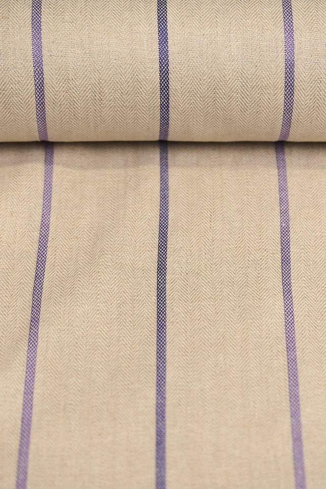 Discover the rich elegance of our Linen Novelty Herringbone Yarn-Dyed Stripe Fabric in a captivating Grape hue. This exquisite material, skillfully crafted in India, boasts a sophisticated herringbone weave subtly enhanced with a refined yarn-dyed stripe, offering a timeless and classic aesthetic. With its versatile 54-inch width and a comfortable 5.5 oz/yd² midweight, this pure linen provides both excellent drape and enduring quality. It's an impeccable choice for any crafting or sewing project, destined to infuse your creations with a touch of understated luxury and classic appeal.