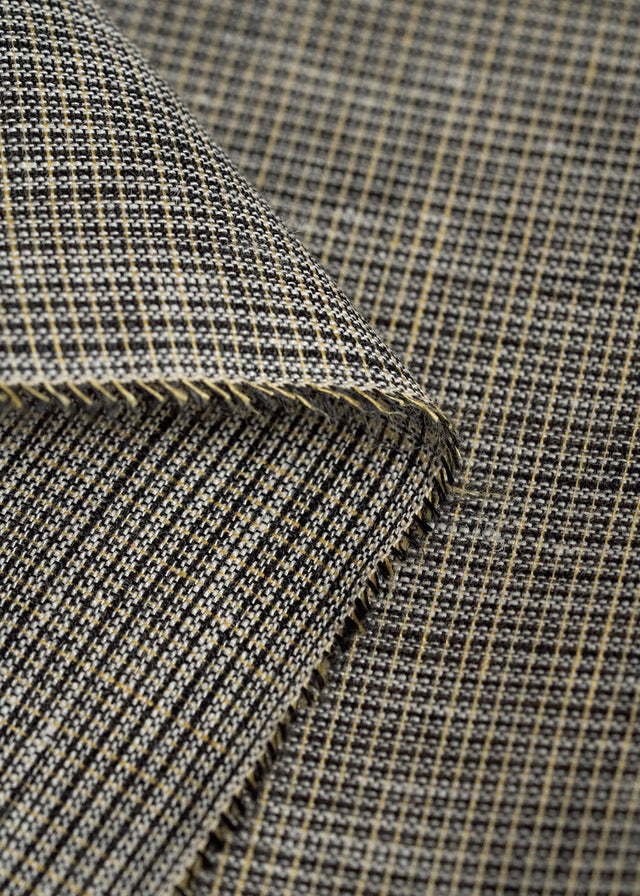 Elevate your designs with our Pure Linen Matched Yarn-Dyed Stripe Black Tweed, an exquisite fabric directly from Ireland. This textile boasts a captivating three-tone stripe pattern in Black, Yellow, and Ivory, meticulously created through yarn-dyeing for deep, lasting color integration. Weighing a delicate 4.5 oz/yd² and spanning a generous 62"/60" width, this linen combines a sophisticated tweed-like texture with the renowned softness of pure Irish linen. Available in both a crisp flat finish and a pre-softened laundered option, it's an ideal choice for crafting distinctive apparel and elegant home accents.