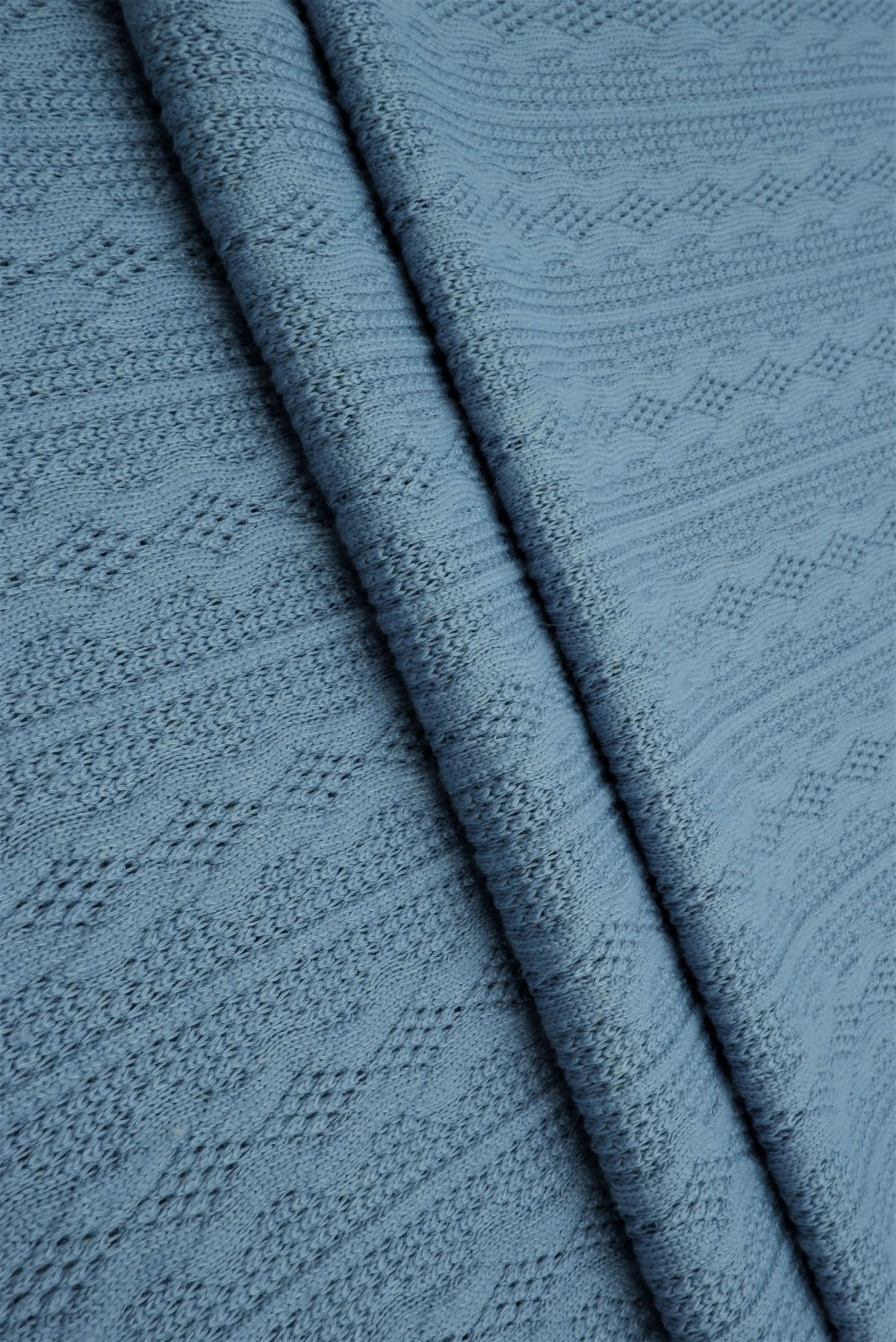 Cable Knit Jacquard Sweater Fabric, Heavyweight Stretch Knit 58/60" Wide - CHAMBRAY is backordered and will ship as soon as it is back in stock.