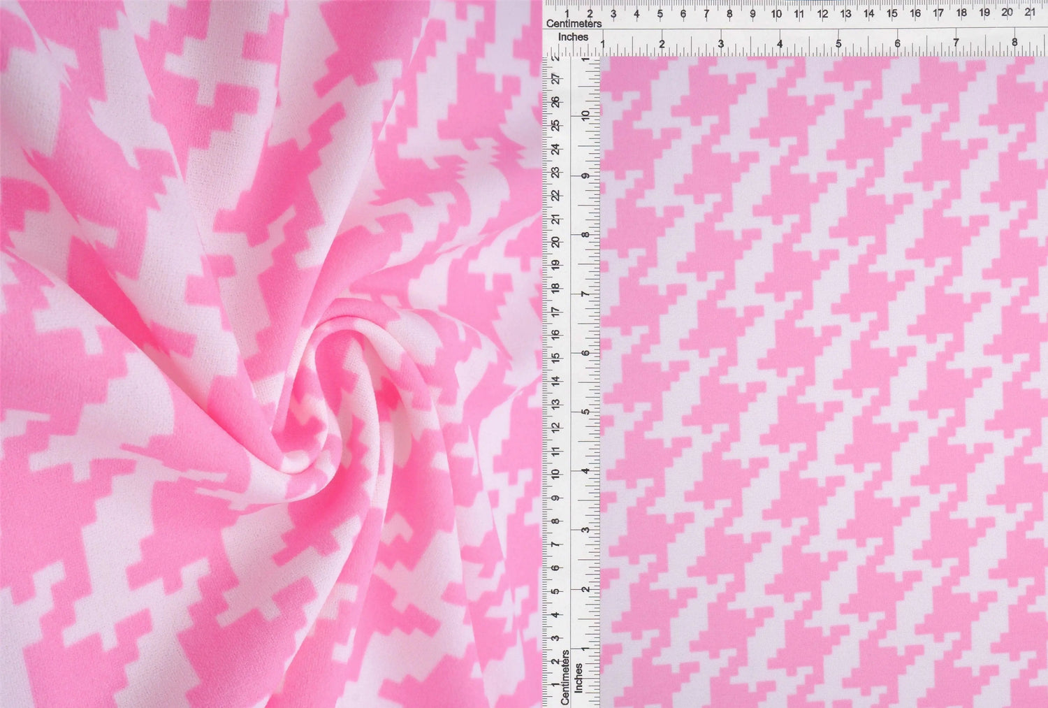Techno Crepe Knit Fabric Houndstooth Print, Stretchy & Structured 58/60" Wide - PINK/WHT 2 is backordered and will ship as soon as it is back in stock.