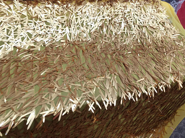 • 1 Yard Gold Long Teardrop Sequins on Black Mesh fabric